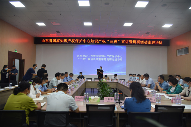 導(dǎo)讀:7月29日,山東省市場監(jiān)管局市場稽查專員蘇鵬、省國家知識產(chǎn)權(quán)保護(hù)中心副主任尹強(qiáng)民一行18人,來到華紡股份有限公司開展知識產(chǎn)權(quán)“三進(jìn)”宣講暨調(diào)研活動(dòng)。