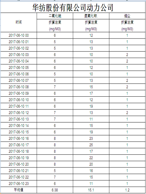 煙氣排放數據信息公開2017.6.10數據